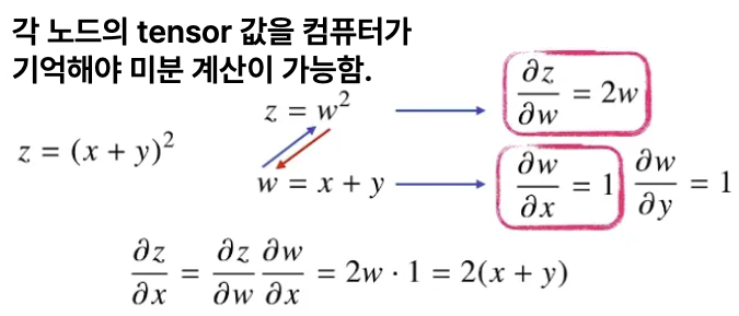 - ํฉ์ฑํจ์ ๋ฏธ๋ถ๋ฒ์ธ chain-rule ๊ธฐ๋ฐ ์๋ ๋ฏธ๋ถ ์ฌ์ฉ