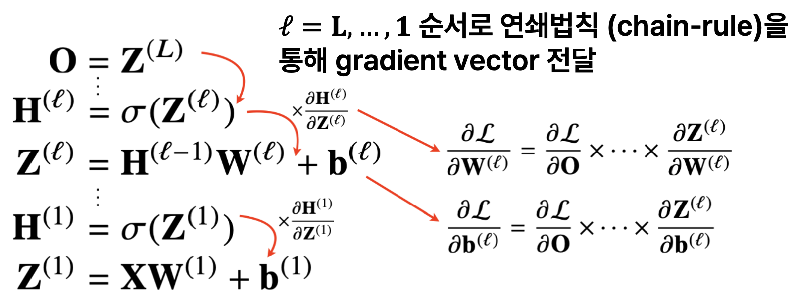 ๊ฐ ์ธต ํ๋ผ๋ฉํ์ ๊ทธ๋ ๋์ธํธ ๋ฒกํฐ๋ ์์ธต๋ถํฐ ์ญ์์ผ๋ก